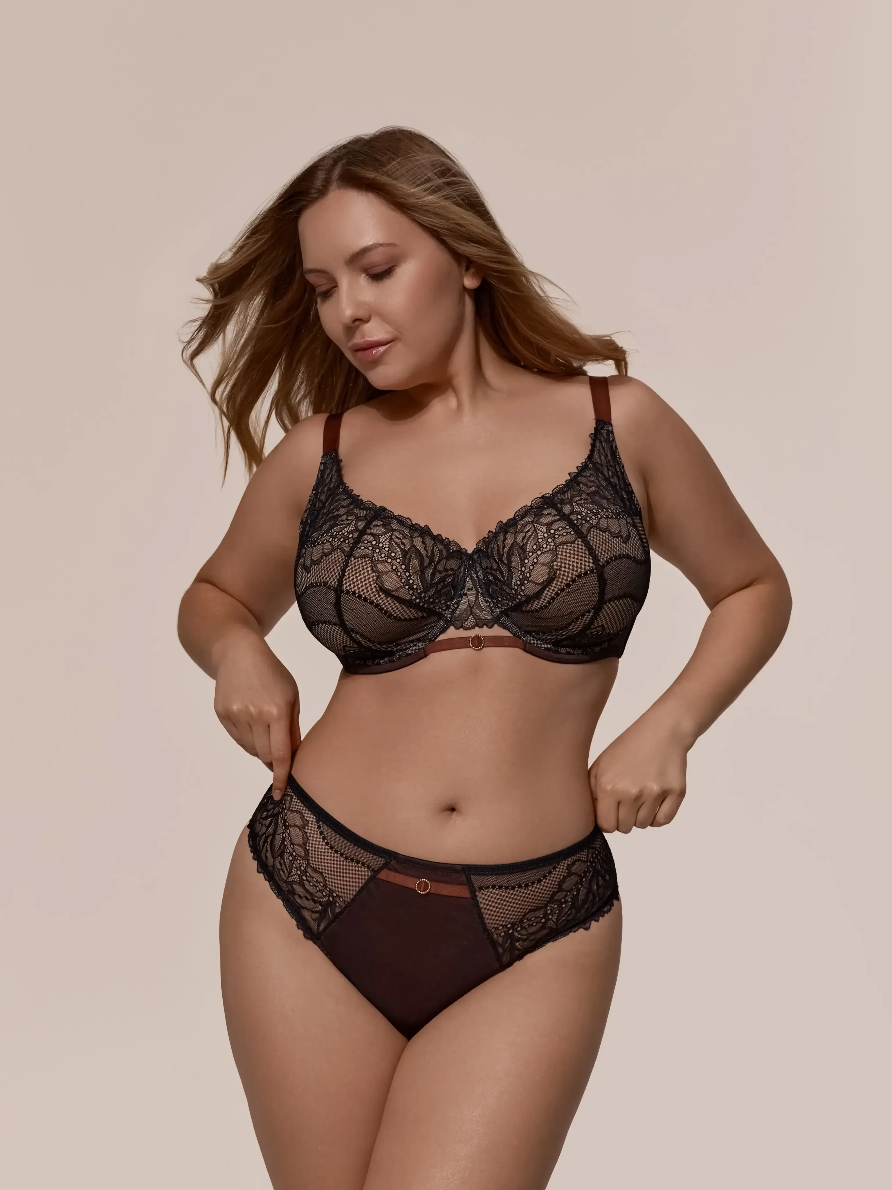 Для больших размеров предусмотрена усиленная боковая поддержка и усиление бретелей, что помогает равномерно распределить нагрузку и сохранить безупречную форму.